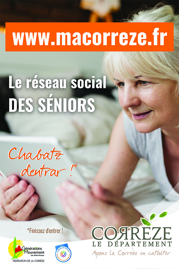 Sous l’impulsion du Conseil Départemental de la Corrèze et en partenariat avec la Conférence des Financeurs de la Prévention de la Perte d’Autonomie, il a été proposé d’offrir aux séniors corréziens la possibilité d’expérimenter un nouvel outil de communication via un réseau social dédié et spécifique.