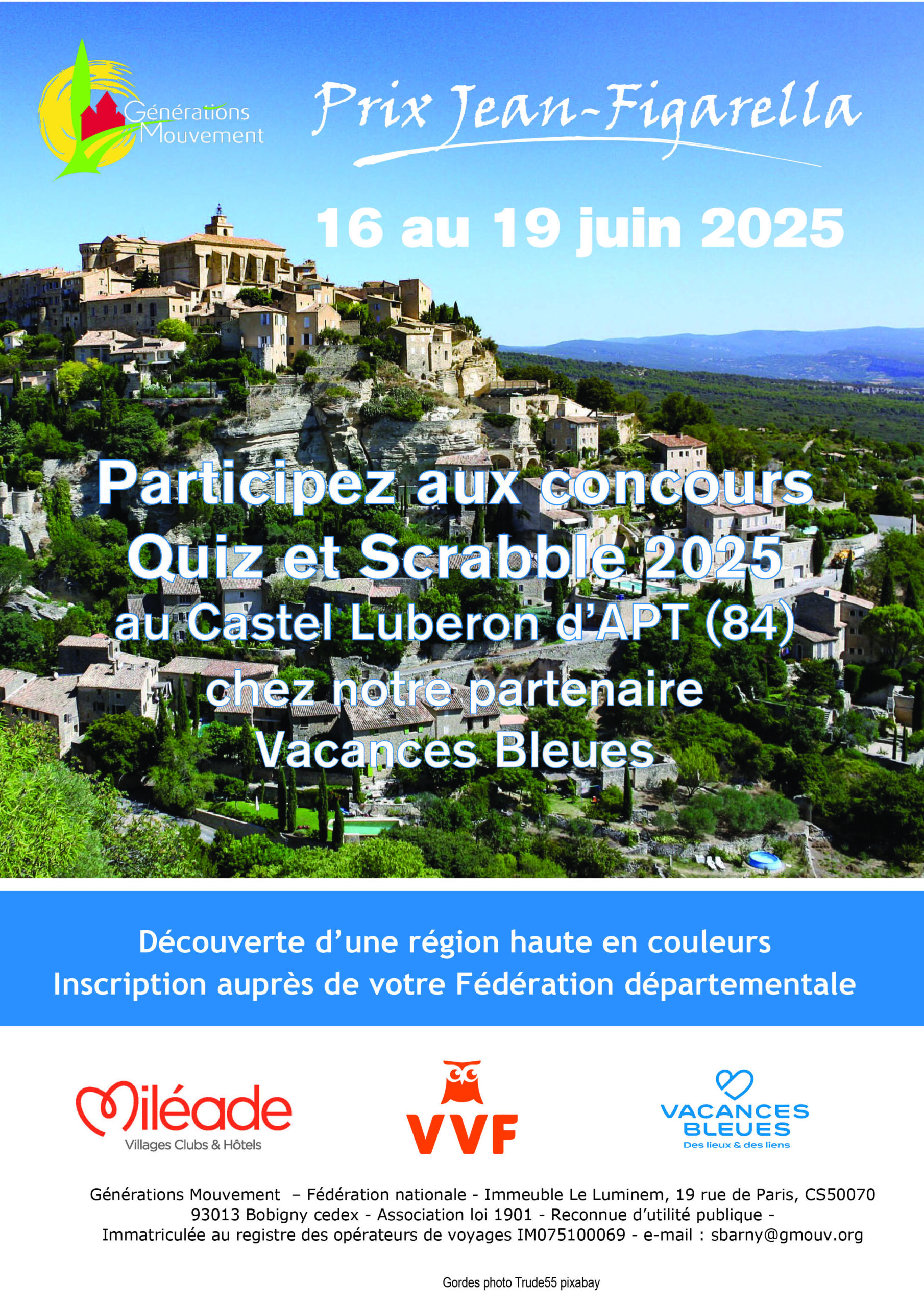 La Fédération nationale de Générations Mouvement va organiser son premier concours national de scrabble duplicate ouvert à tous les adhérents du Mouvement. Venez relever le challenge !
