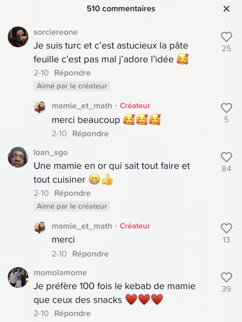 Avec presque 2 millions d’abonnés et 26 millions de « j’aime », Math et sa mamie cartonnent sur TikTok. Ils se mettent tout deux en scène dans des tutoriels et des moments de la vie quotidienne avec amour et humour.