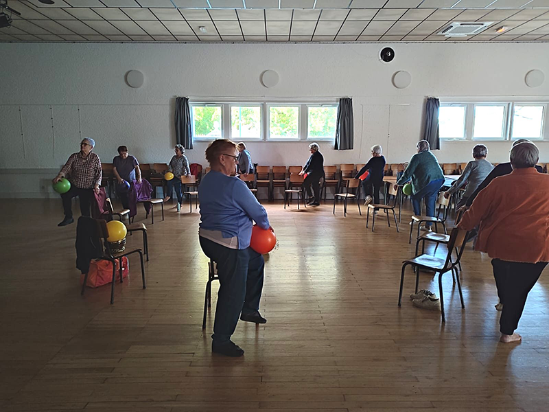 Devant le succès rencontré par ces séances au cours desquelles nous avions une quinzaine de participantes (un seul homme inscrit) j’ai proposé au bureau de mettre en place deux séances par mois dans la salle des fêtes du village.